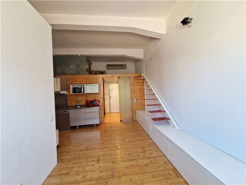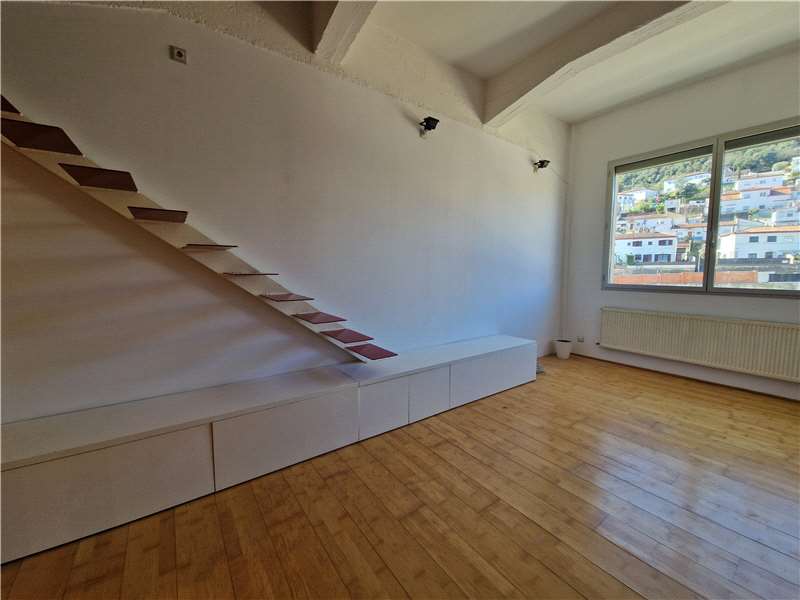 Piso tipo loft en venta en Olot, con espacios abiertos con sala de estar-comedor-cocina abierta y habitación doble aparte, 1 baño con bañera, altillo para otro dormitorio y espacio para lavadero. Calefacción y aire acondicionado. Techos altos con acabos de hormigón. Piso práctico y moderno!