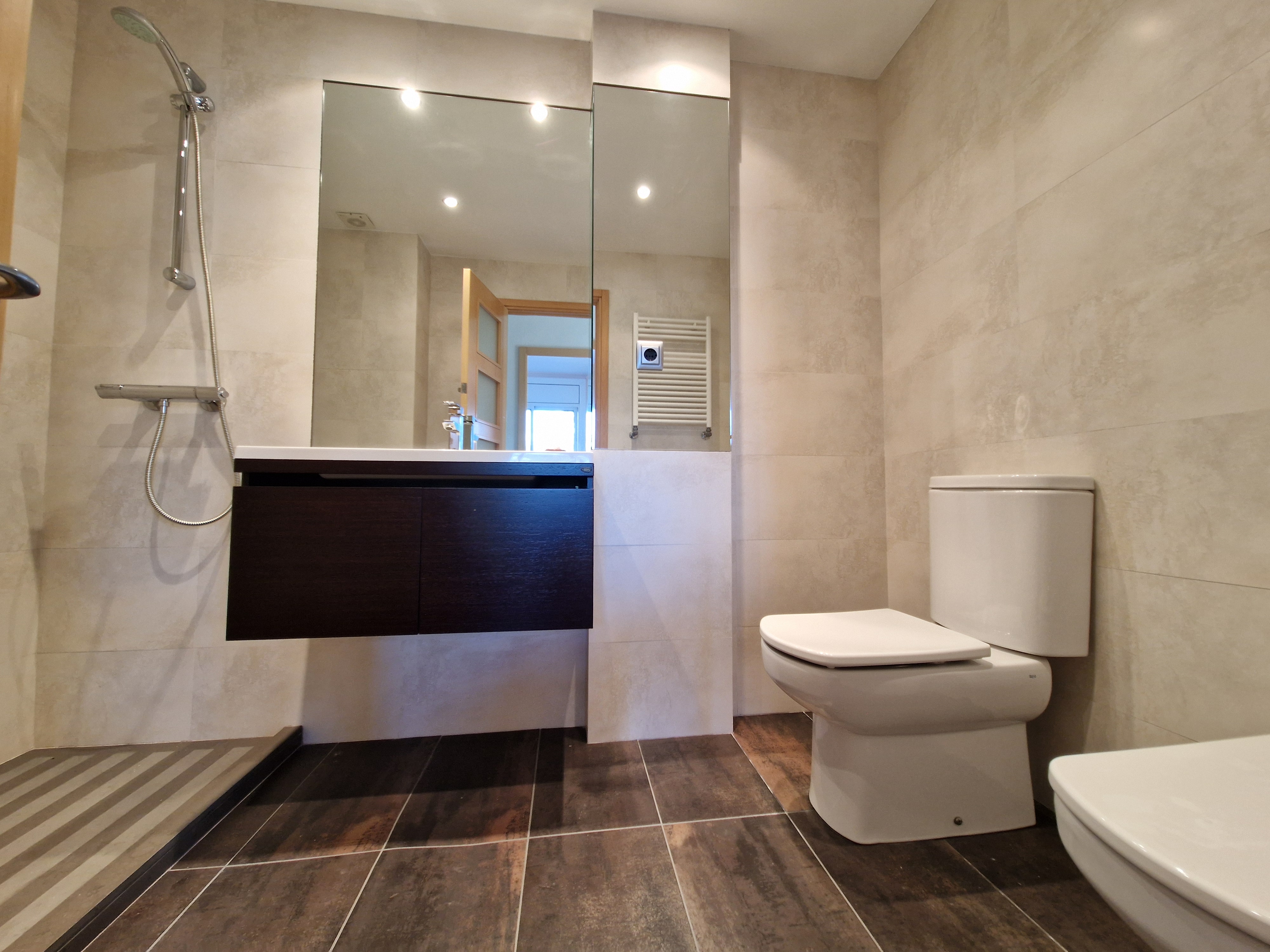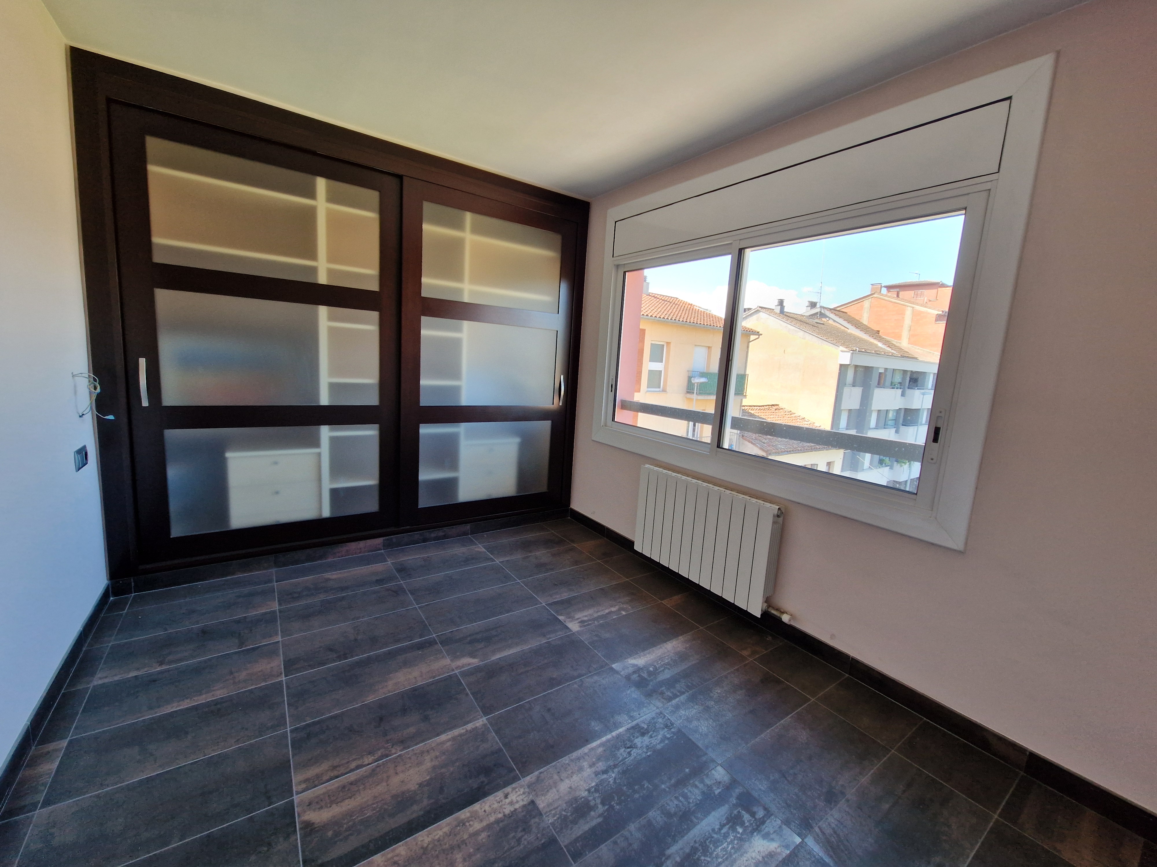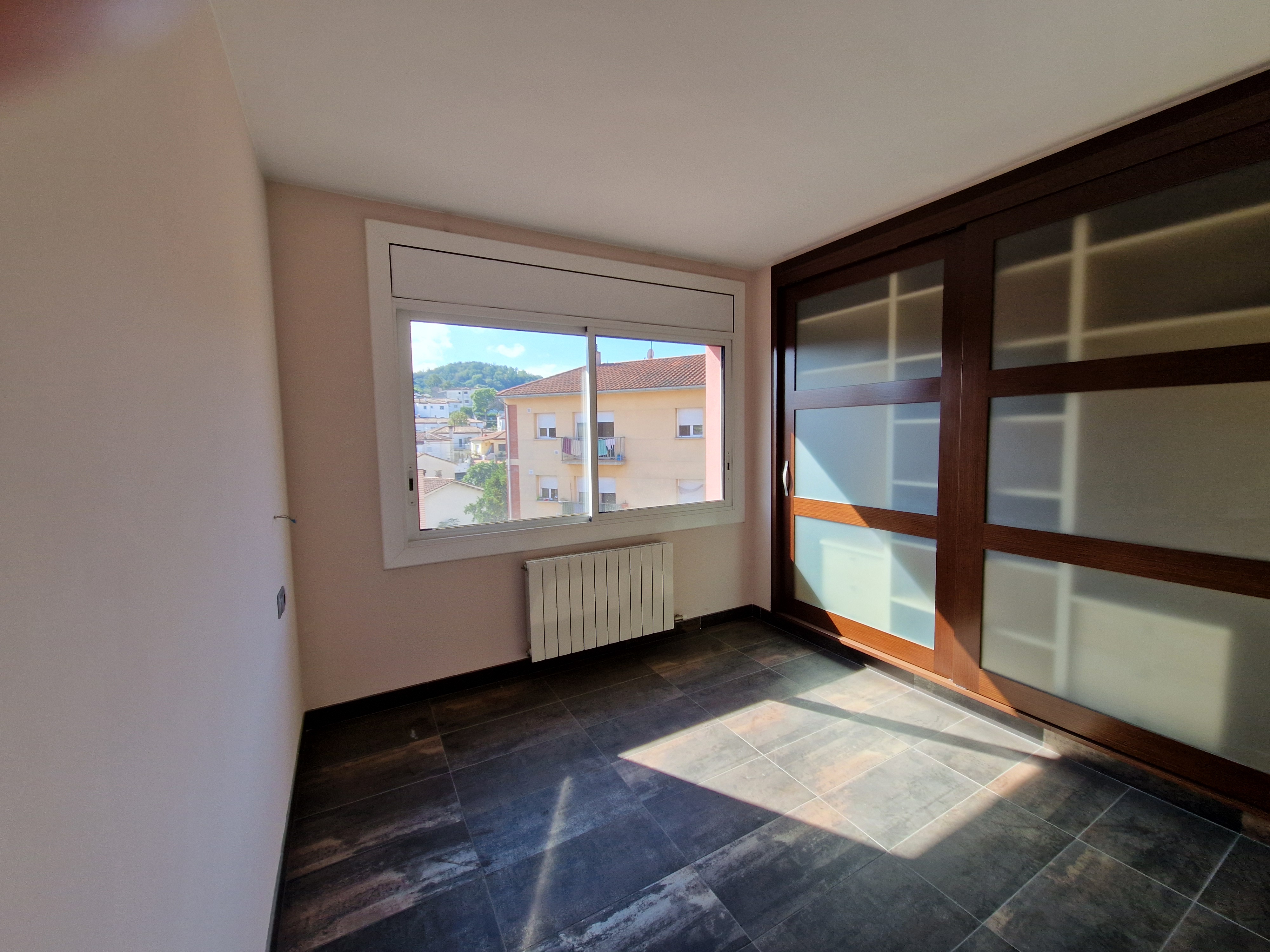 Piso esquinero en venta en Olot, grande y espacioso con 3 habitaciones, salón comedor con chimenea, cocina grande con lavadero a parte, 1 baño con ducha + 1 baño de cortesía. Persianas eléctricas. Piso totalmente reformado, para disfrutar de sol y vistas todo el día! Con plaza de parking y 2 trasteros.